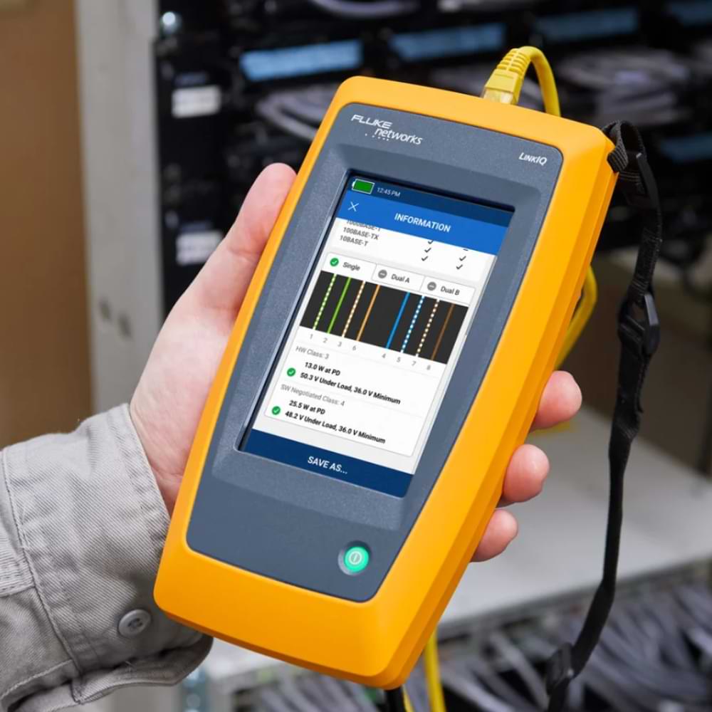 Miete bei uns das Fluke Networks LinkIQ-Kit – das professionelle Messgerät zur schnellen und zuverlässigen Qualifizierung von Kupfer-Netzwerken. Es kombiniert Kabellängen- und Verdrahtungsdiagnose mit Switch-Informationen und liefert klare Messergebnisse für Installateure, IT-Techniker und Netzwerk-Admins.